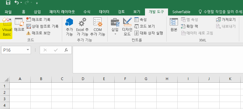 이는 보안 상의 이유로 기본적으로 엑셀 프로그램에서는 개발 도구가 보이지 않게 설정이 되어있기 때문입니다.
