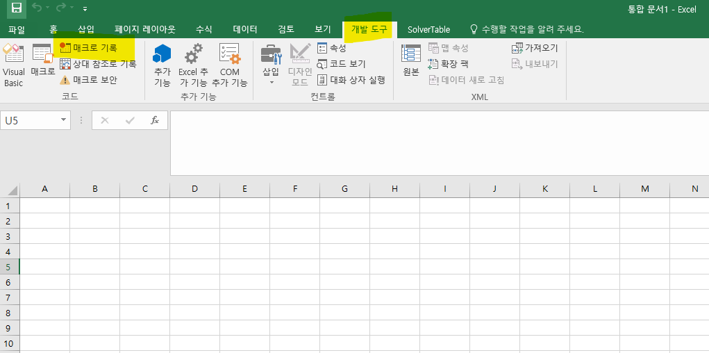 앞서 설명드린 것과 같이 엑셀에서 VBA는 기본적으로 매크로 기능을 개발하는데 쓰이기에,