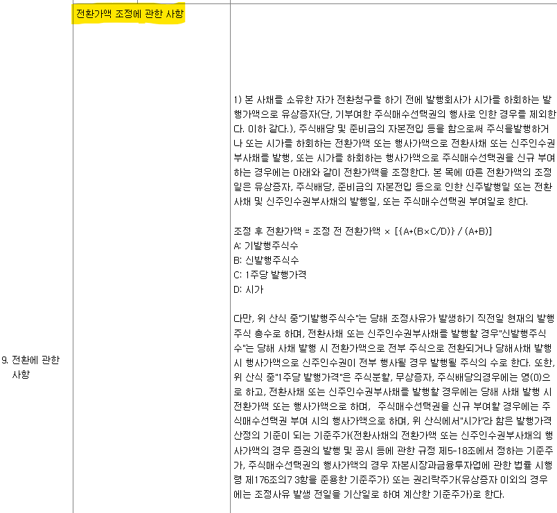 해당 조항은 앞서 설명드린 전환가액의 변경의 하한을 정해놓은 조항입니다.