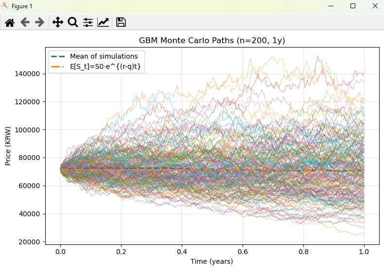 S0 = 71600 # 현재 주가 (예: 2025-08-14 기준)